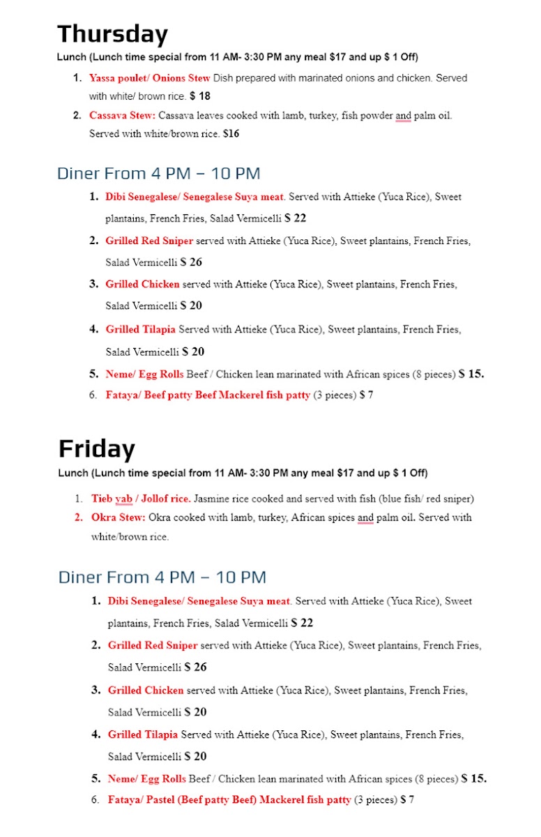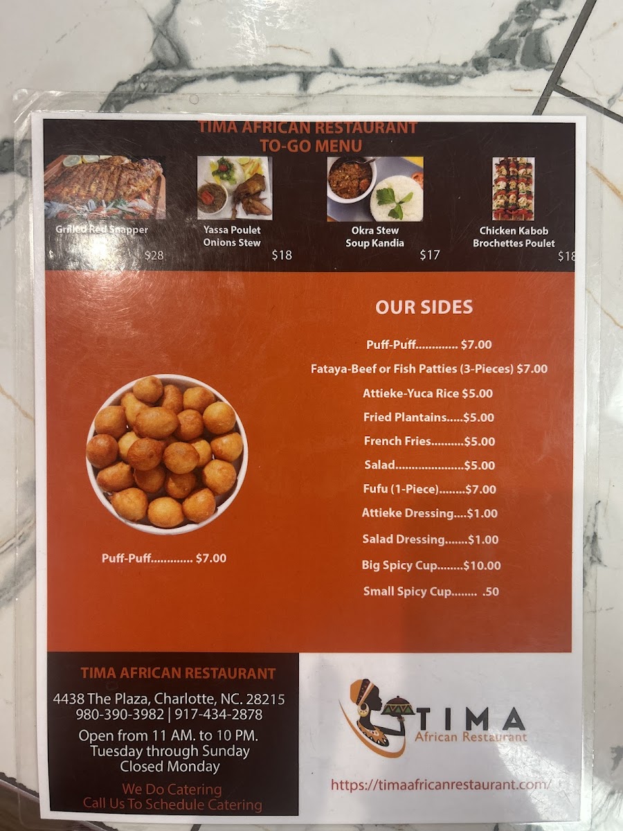 If you’re curious about bold, comforting West African flavors, the Tima African Restaurant Menu at 4438 The Plaza, Charlotte, NC 28215, United States, is where things get exciting. Right away, you’ll notice how hearty and vibrant the dishes feel. From rich, slow-simmered stews to perfectly seasoned grilled meats, everything carries that deep, homemade taste that sticks with you.